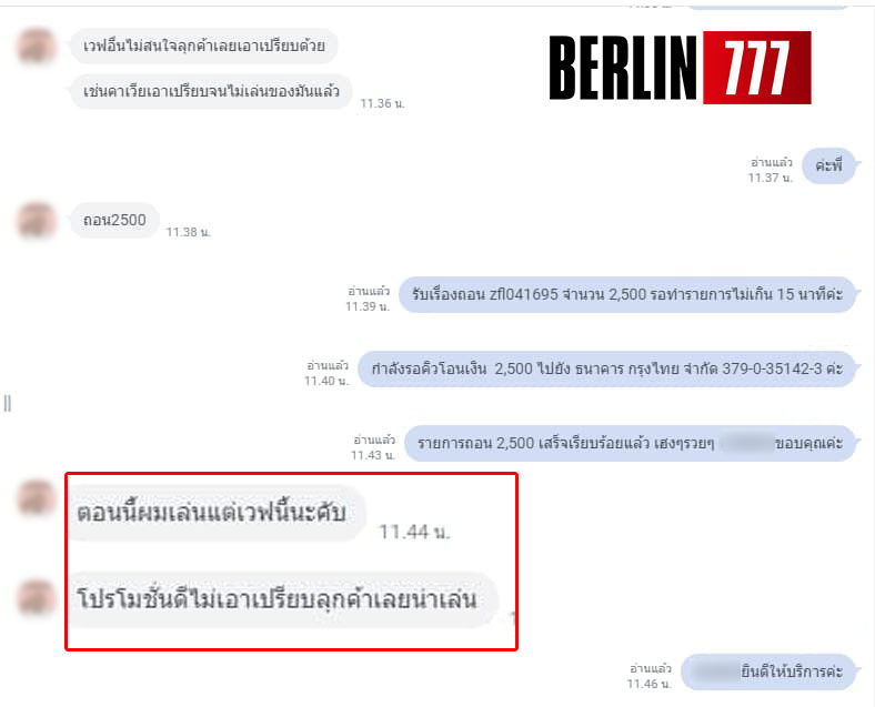 BERLIN777 รีวิวคำชมจากลูกค้า